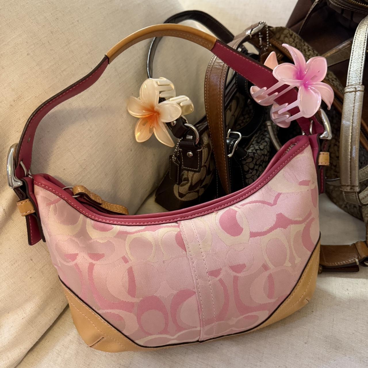 cutest authentic pink coach bag in very good condition. She has perfectly clean and spotless interior. However, for her exterior she has 1 or 2 tiny stains, and stains on handle. But overall she is in great shape. Please look at pictures for more information